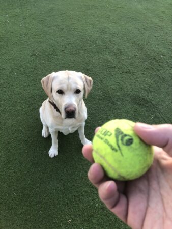 朝はテニスボールタイムです