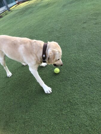 【写真】興奮し過ぎてボールを飲み込まないように注意して遊んでいます。