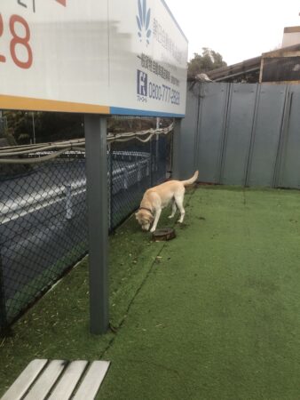 【写真】今朝の現太です。雨の散歩です。
