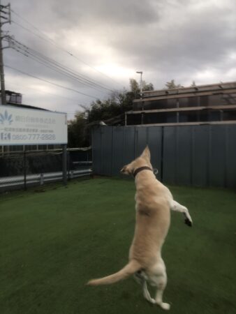 朝はボール遊びで