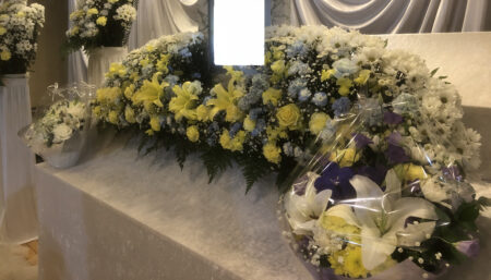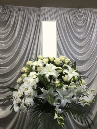 【写真】常設白木祭壇に祭壇花です。