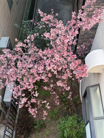事務所の裏庭の桜が開花しました