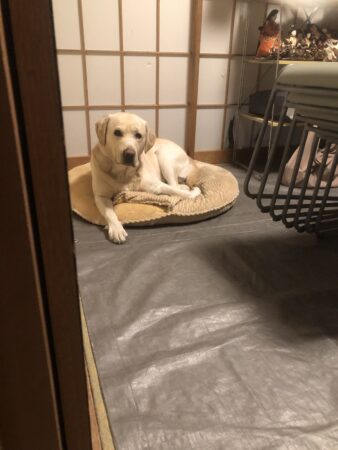 【写真】昨夜の現太です。この丸いクッションで寝ていることが多いです。