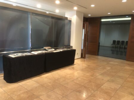 【写真】展示用テーブルは弊社でご用意します。開式前など昔の写真などで思い出話などされるとよろしいかと思います。